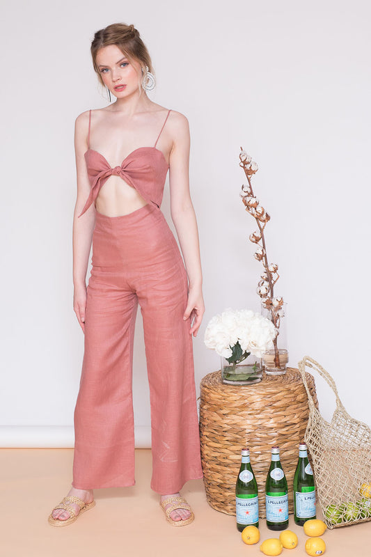 FIJI PANTS SET Tie Front Crop Top + Culottes (Old Rose Crepe)
