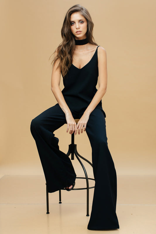 MANDALAY SET: Crepe Wide Leg Trousers and Tie Top Set (Black)