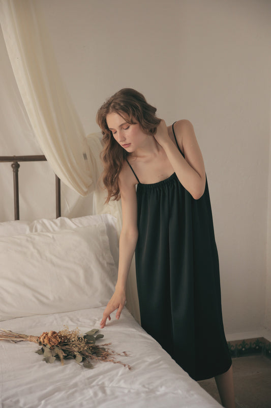 TOULOUSE Silk Slip Dress with Thin Straps (Black Silk)