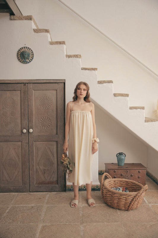TOULOUSE Silk Slip Dress with Thin Straps (Cream Silk)