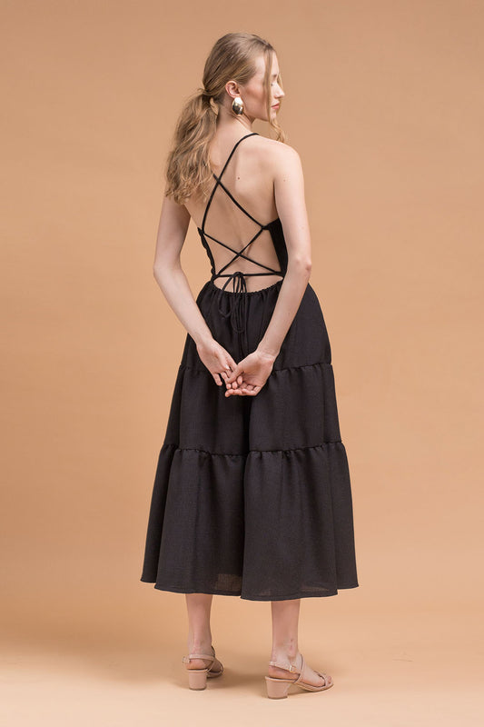 PERFECTA Criss Cross Tie Back Midi Dress (Black Linen)Regular price ₱2,750.00Regular priceUnit price / per-