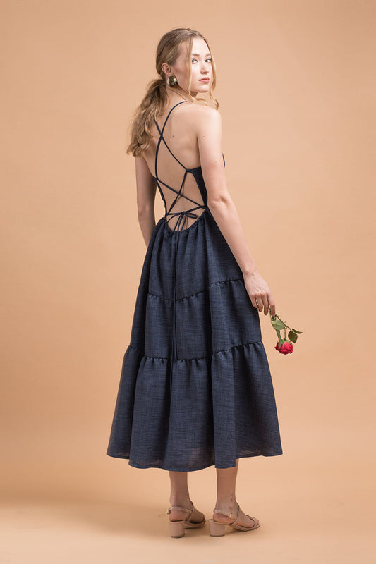 PERFECTA Criss Cross Tie Back Midi Dress (Midnight Blue Linen)Regular price ₱2,750.00Regular priceUnit price / per-