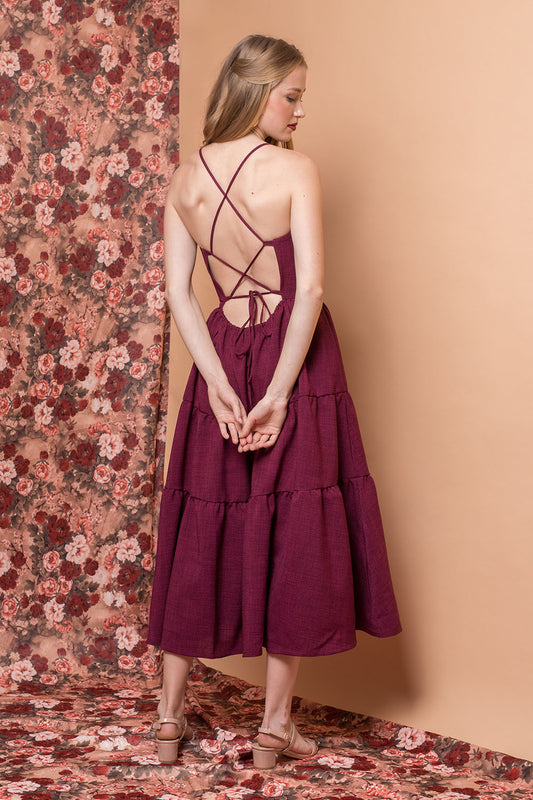 PERFECTA Criss Cross Tie Back Midi Dress (Plum Linen)Regular price ₱2,750.00Regular priceUnit price / per-