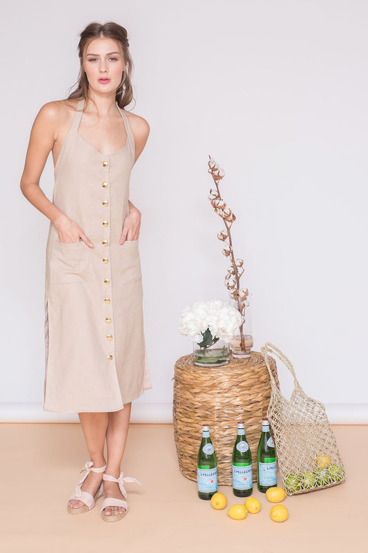GRENADA Halter Midi Dress with Button Detail and Side Slits (Nude Linen)Regular price ₱2,750.00Regular priceUnit price / per-