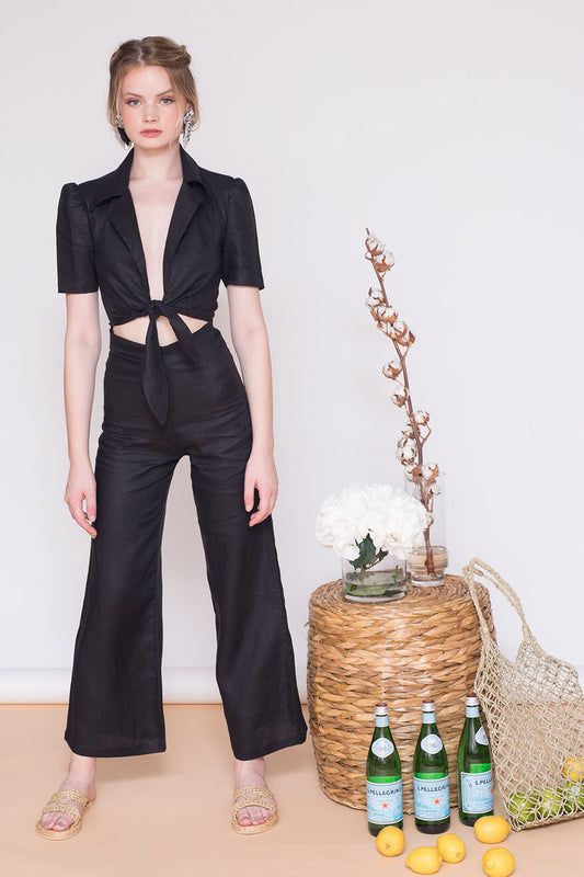 LOS CABOS Collared Playsuit with Tie Front (Black Linen)Regular price ₱2,990.00Regular priceUnit price / per-