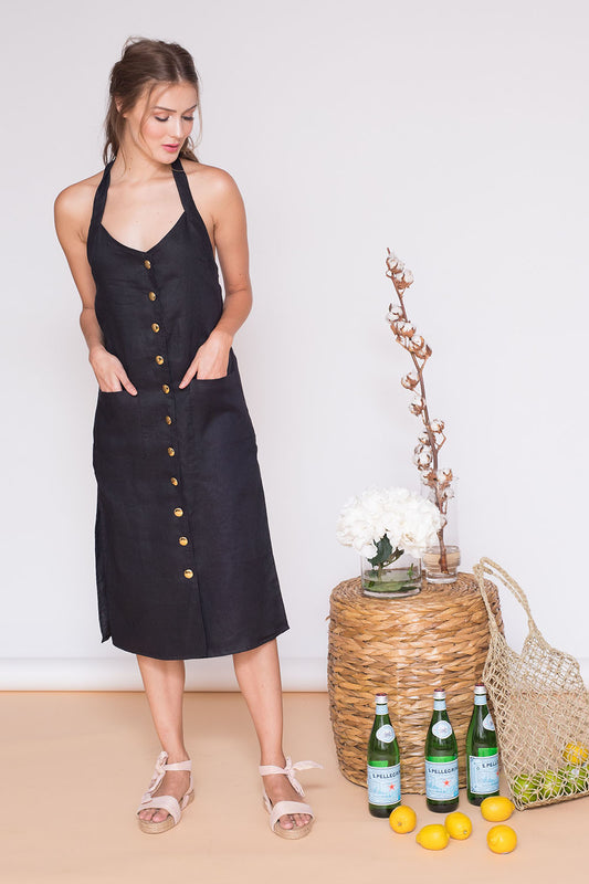 GRENADA Halter Midi Dress with Button Detail and Side Slits (Black Linen)Regular price ₱2,750.00Regular priceUnit price / per-
