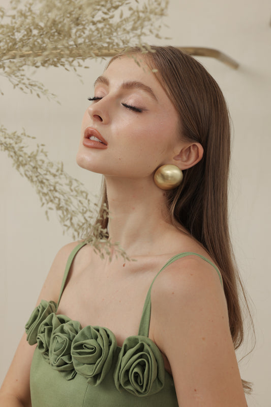 COCO DRESS Strapless Baroque Style Waist Midi Dress with Floral Neckpiece (Olive Linen)Regular price ₱4,990.00Regular priceUnit price / per-