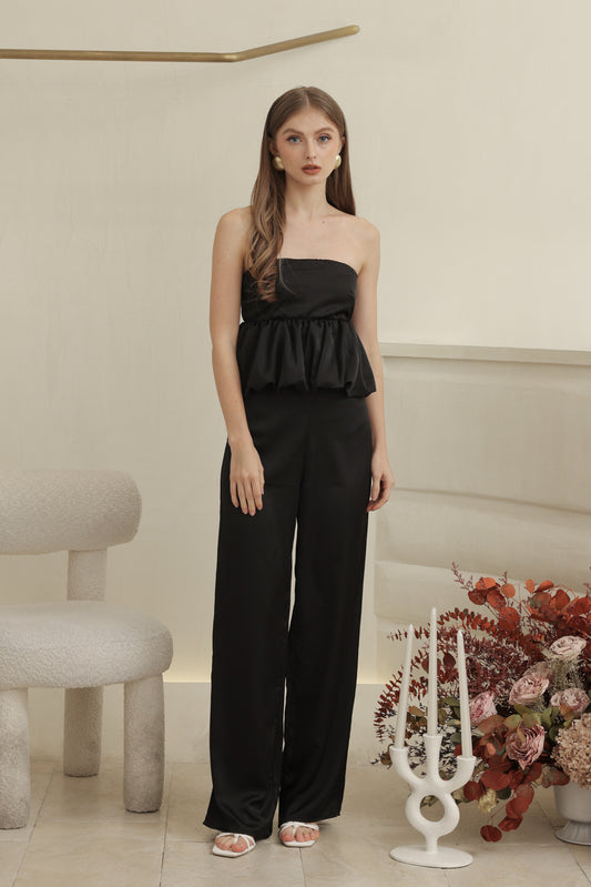 REMI PANT SET Strapless Peplum Top and Straight Cut Pant (Black Silk Crepe)