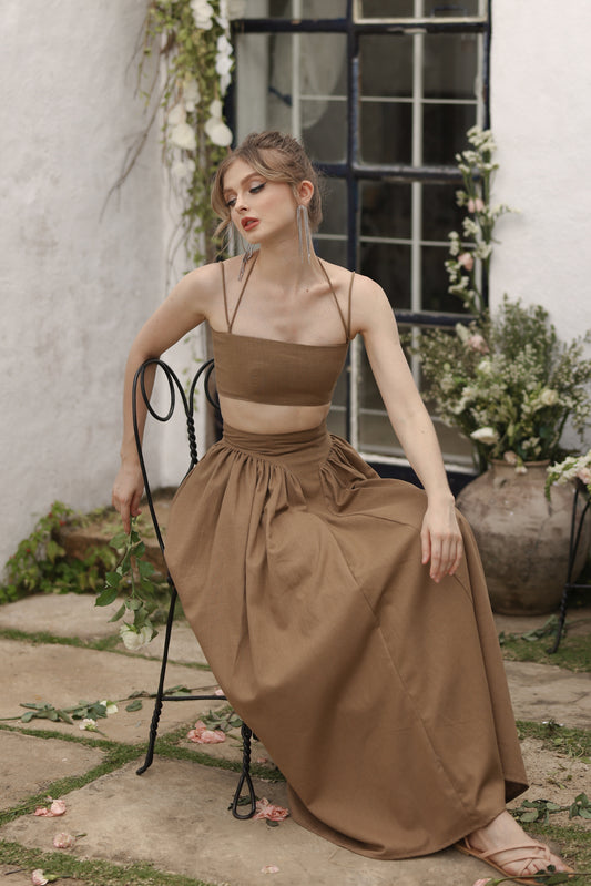 GIUSTINA CROP BANDEAU ONLY (Light Brown Linen)