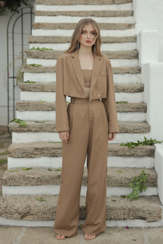 GIUSTINA BLAZER ONLY Crop Blazer (Light Brown Linen)