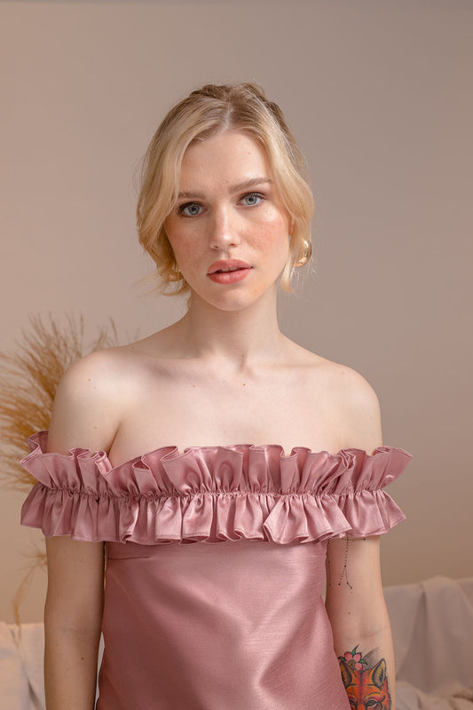 LUNA TOP Gazar Top with Oversize Ruffle Off Shoulder (Old Rose Gazar)
