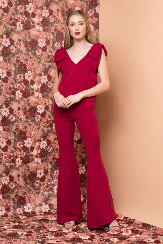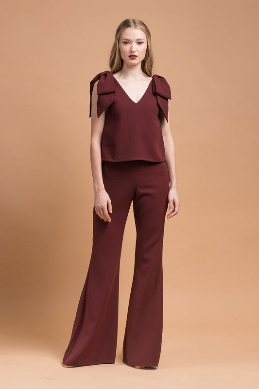 BUENA Bow Top with V Neckline (Maroon Crepe)