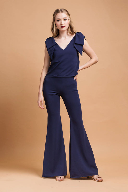 BUENA Bow Top with V Neckline (Midnight Blue Crepe)
