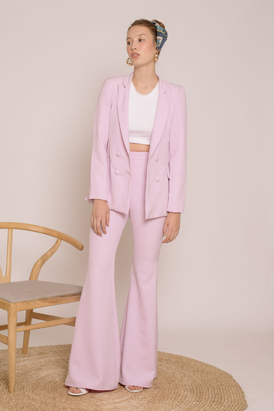 BUENA SET Bow Top with V Neckline and Flared High Waist Pant (Lavender)