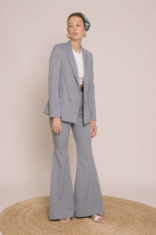 BUENA SET Bow Top with V Neckline and Flared High Waist Pant (Serenity Blue)