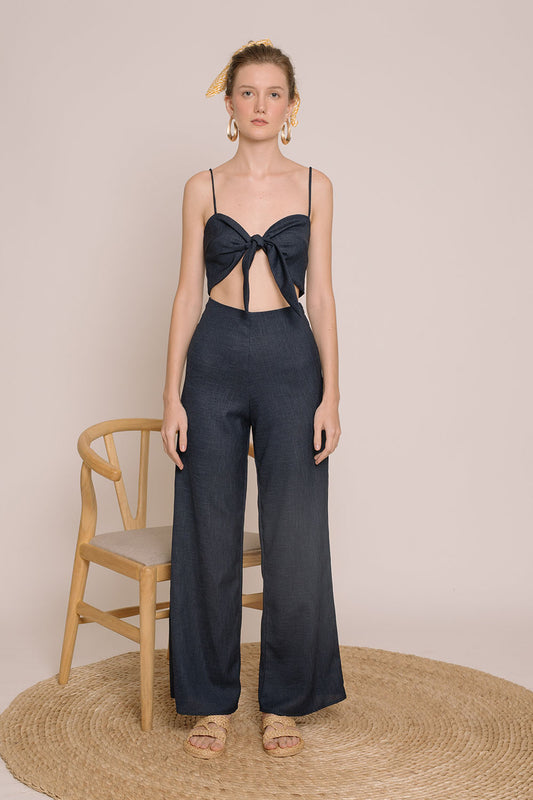 FIJI SET Tie Front Crop Top and Culottes (Midnight Blue Crepe)