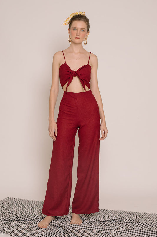 FIJI SET Tie Front Crop Top and Culottes (Maroon Crepe)