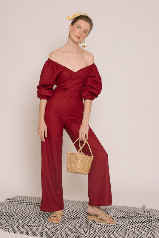 MARRAKESH SET Off Shoulder Multiway Top and Culottes (Maroon Crepe)