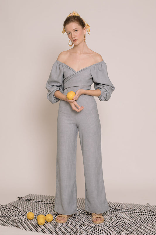 MARRAKESH SET Off Shoulder Multiway Top and Culottes (Serenity Blue Linen)