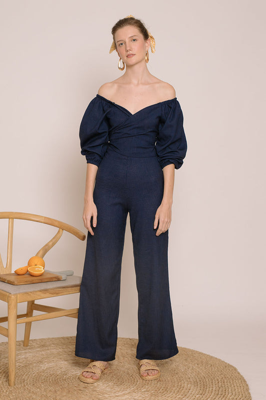 MARRAKESH SET Off Shoulder Multiway Top and Culottes (Midnight Blue Crepe)
