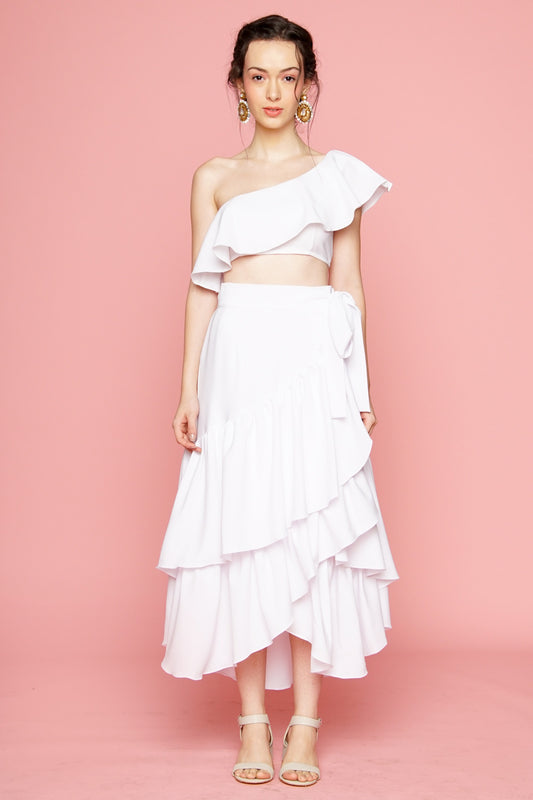 LOLITA Asymmetric Ruffle Crop Top (White)