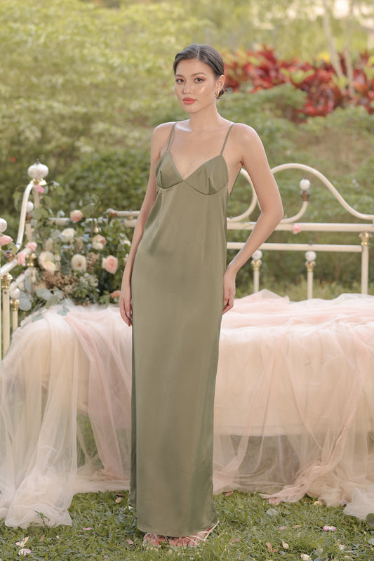 ANITA Strappy Backless Midi Dress (Olive Silk Crepe)