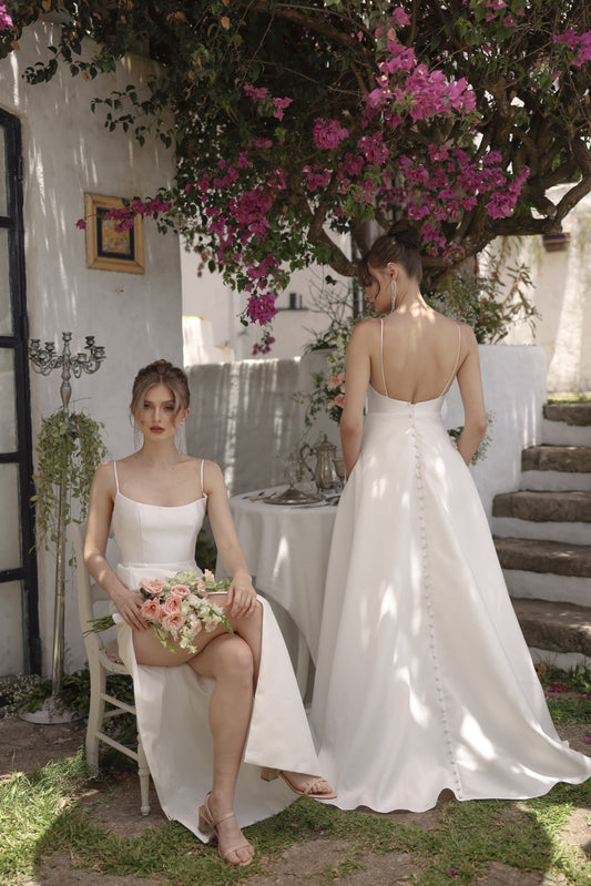 ANTONELLA GOWN Scoop Neckline High Slit Gown with Detachable Ball Skirt (White Ivory Gazaar)