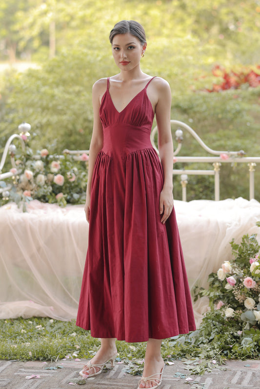 CONCETTA Baroque Style Midi Dress (Maroon Linen)