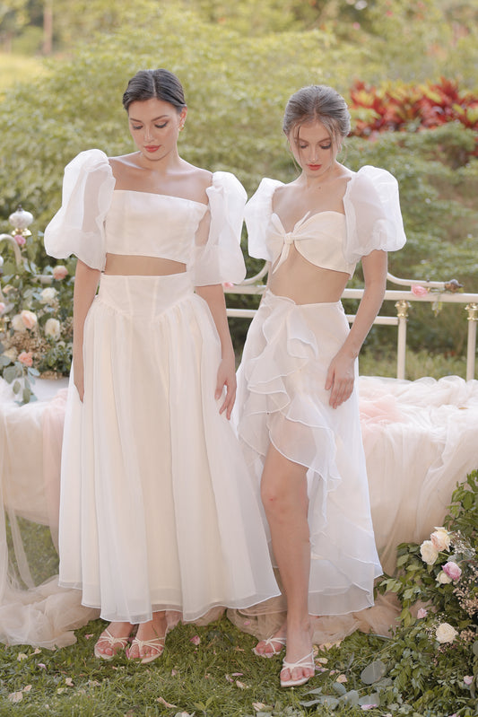 LUPE SET Crop Top with Wrap Ruffled Skirt (Ivory White Matte Organdy)