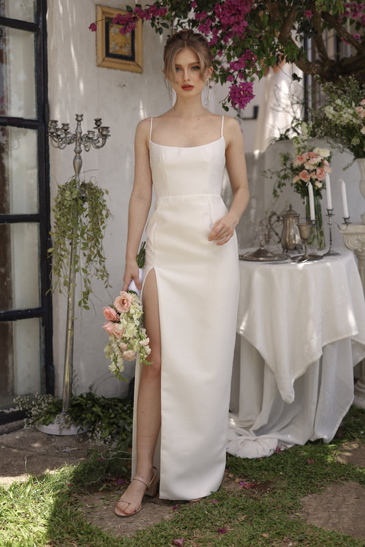 CAMPANA GOWN Scoop Neckline High Slit Gown (White Ivory Gazaar)