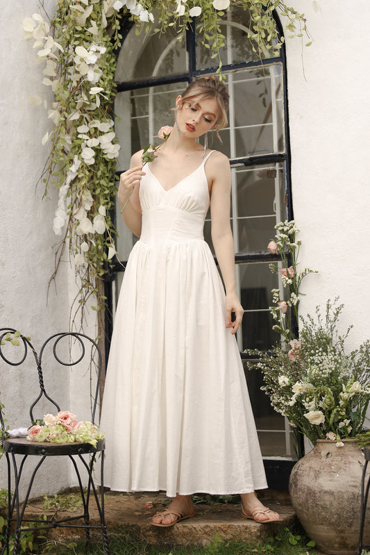 CONCETTA Baroque Style Midi Dress (White Linen)