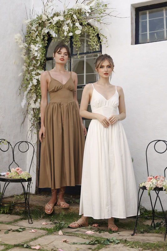CONCETTA Baroque Style Midi Dress (Brown Linen)