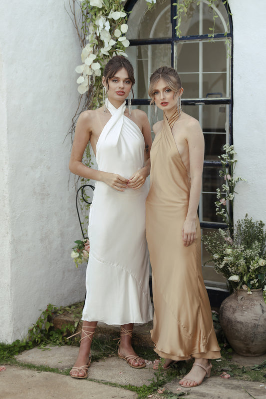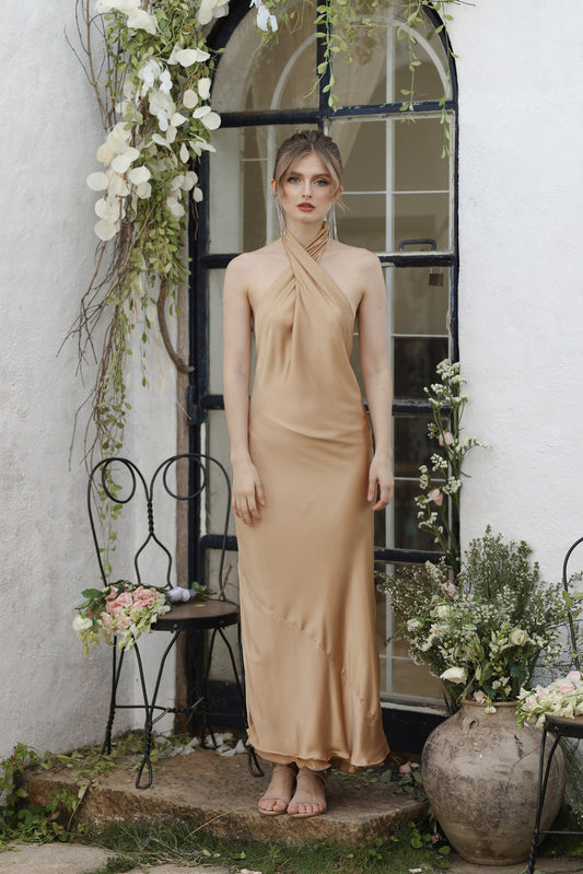 ILARIA Twist Silk Midi Dress (Bronze SC Silk)