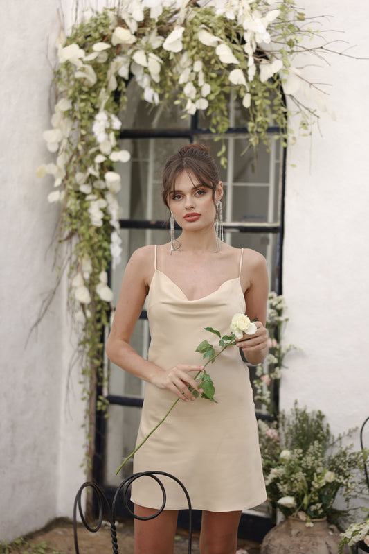 GEMMA Cowl Neck Silk Mini Dress (Nude Italian Silk)