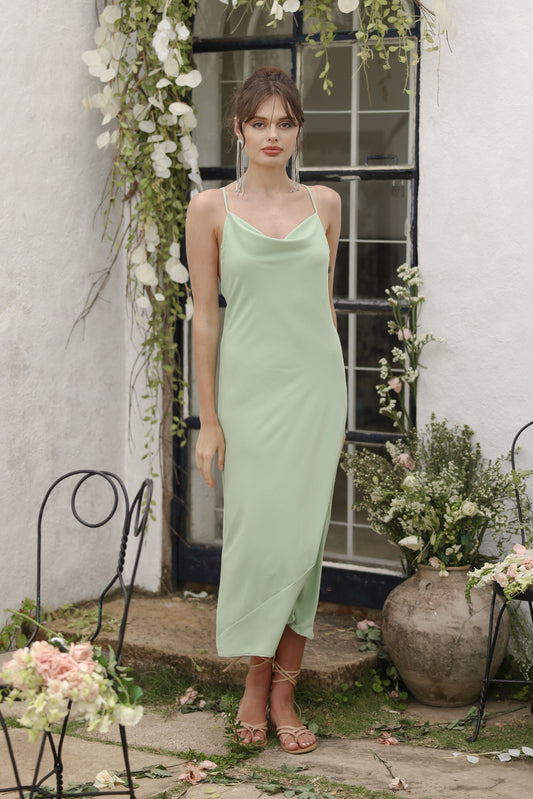 GIRALDA Cowl Neck Silk Midi Dress (Light Sage Silk)