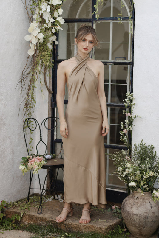 GIRALDA Cowl Neck Silk Midi Dress (Nude Italian Silk)
