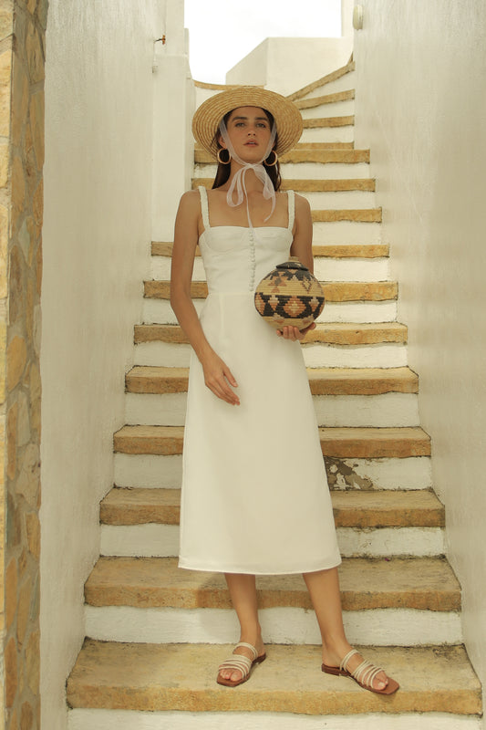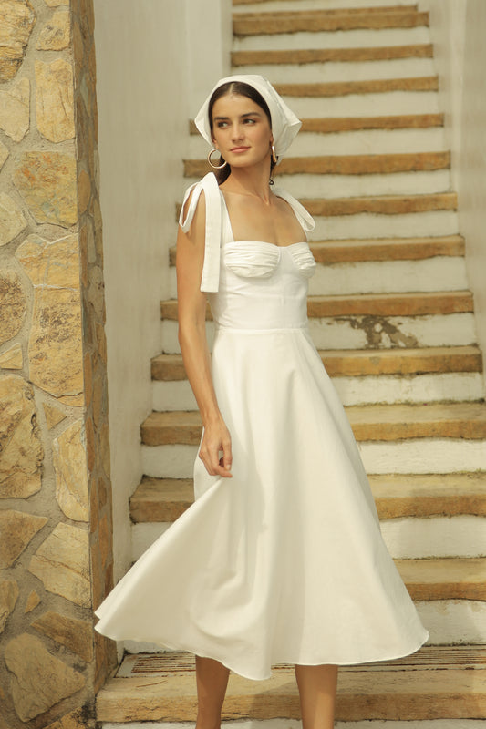 FOSETTE Tie on Shoulder Midi Dress with Gathered Cup (White Linen)Regular price ₱3,290.00Regular priceUnit price / per-