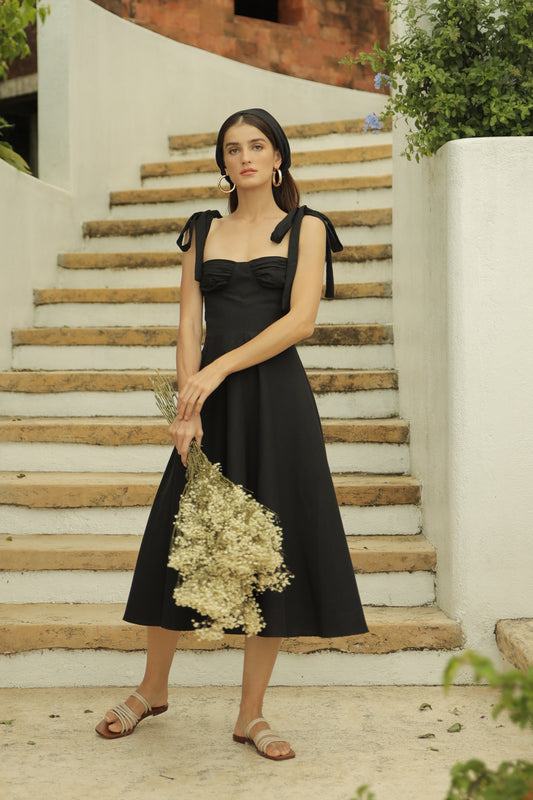 FOSETTE Tie on Shoulder Midi Dress with Gathered Cup (Black Linen)Regular price ₱3,290.00Regular priceUnit price / per-