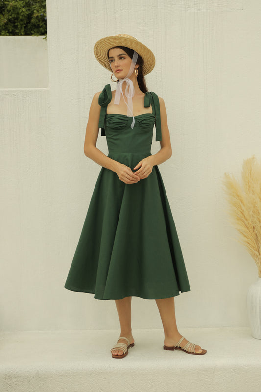 FOSETTE Tie on Shoulder Midi Dress with Gathered Cup (Hunter Green Crepe)Regular price ₱3,290.00Regular priceUnit price / per-