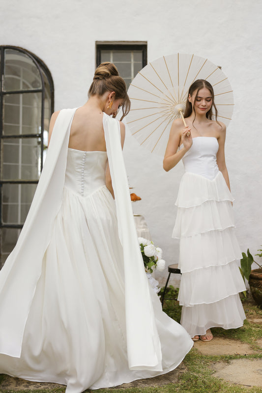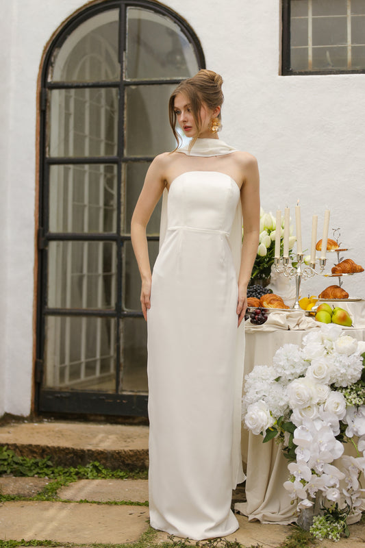 SELENA Strapless Flowy Maxi with Sash Neckpiece (Ivory Crepe Charmeuse Silk)