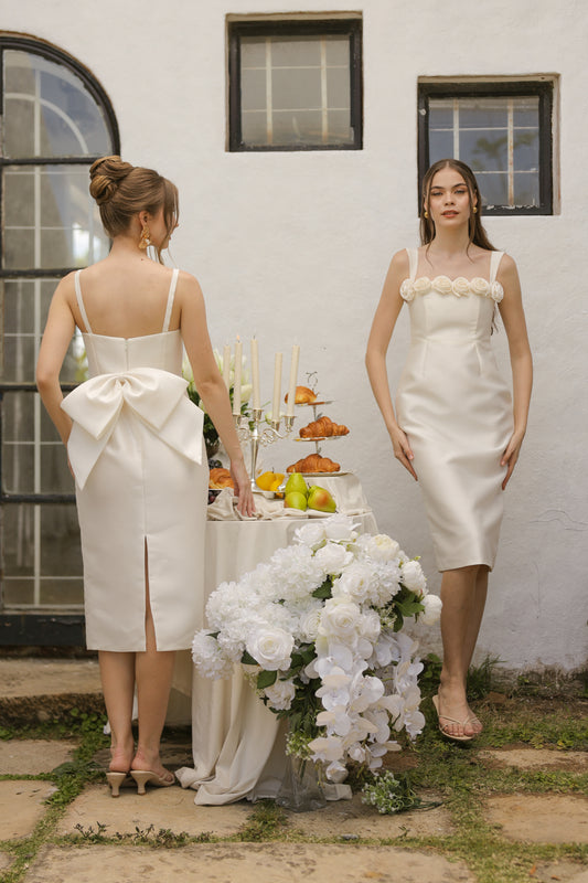 SLOANE Strappy Midi Dress with Bow Back (Ivory Gazaar)