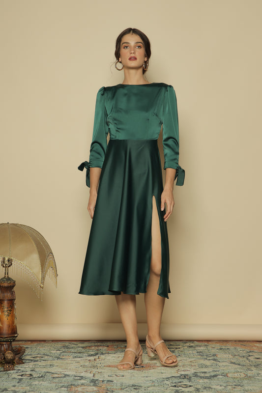 CORALIE Longsleeve Midi Dress with Slit Skirt and Tie on Wrist (Emerald Green Silk)Regular price ₱3,690.00Regular priceUnit price / per-