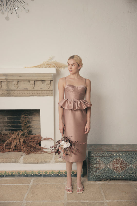 MARBELLA Sweetheart Cut Neckline Midi Dress with Peplum Detail (Taupe Gazar)Regular price ₱4,990.00Regular priceUnit price / per-