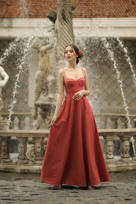 MARIPOSA Sweetheart Neckline Maxi dress with Pockets (Rust Linen)