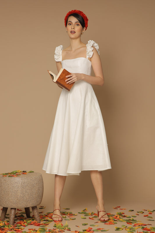 ALONDRA Semi Sweetheart Ruffle Sleeve Midi Dress with Pockets (White Linen)Regular price ₱3,590.00Regular priceUnit price / per-