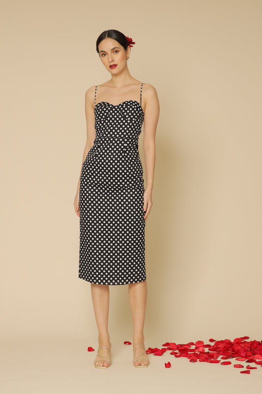 CHIQUITA Sweetheart Midi Dress with Thin Straps (Polkadot Black and White)Regular price ₱2,690.00Regular priceUnit price / per-