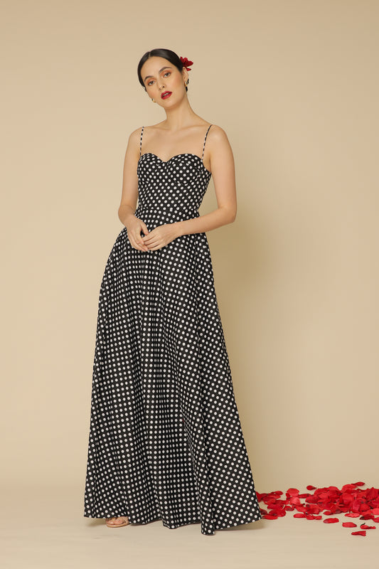 MARIPOSA Sweetheart Neckline Maxi dress with Pockets (Polkadot Black and White)Regular price ₱4,490.00Regular priceUnit price / per-
