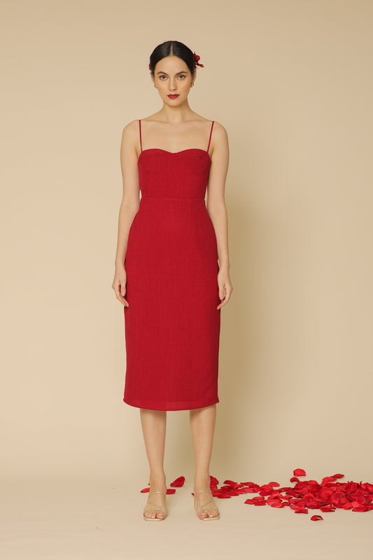 CHIQUITA Sweetheart Midi Dress with Thin Straps (Maroon Linen)Regular price ₱2,690.00Regular priceUnit price / per-