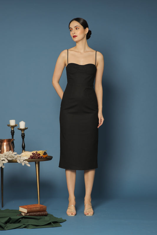 CHIQUITA Sweetheart Midi Dress with Thin Straps (Black Linen)Regular price ₱2,690.00Regular priceUnit price / per-