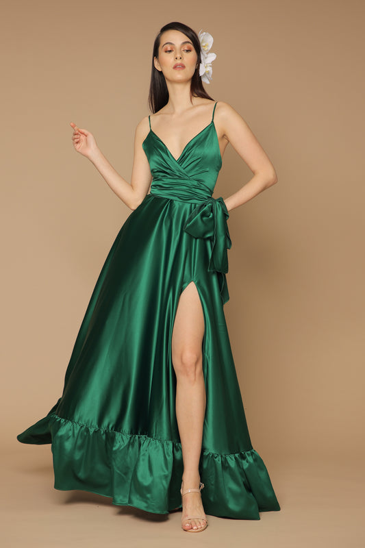 MARGARITA Deep V Maxi with High Slit Skirt and Ruffled Hem with Detachable Waist Tie (Emerald Silk)Regular price ₱4,900.00Regular priceUnit price / per